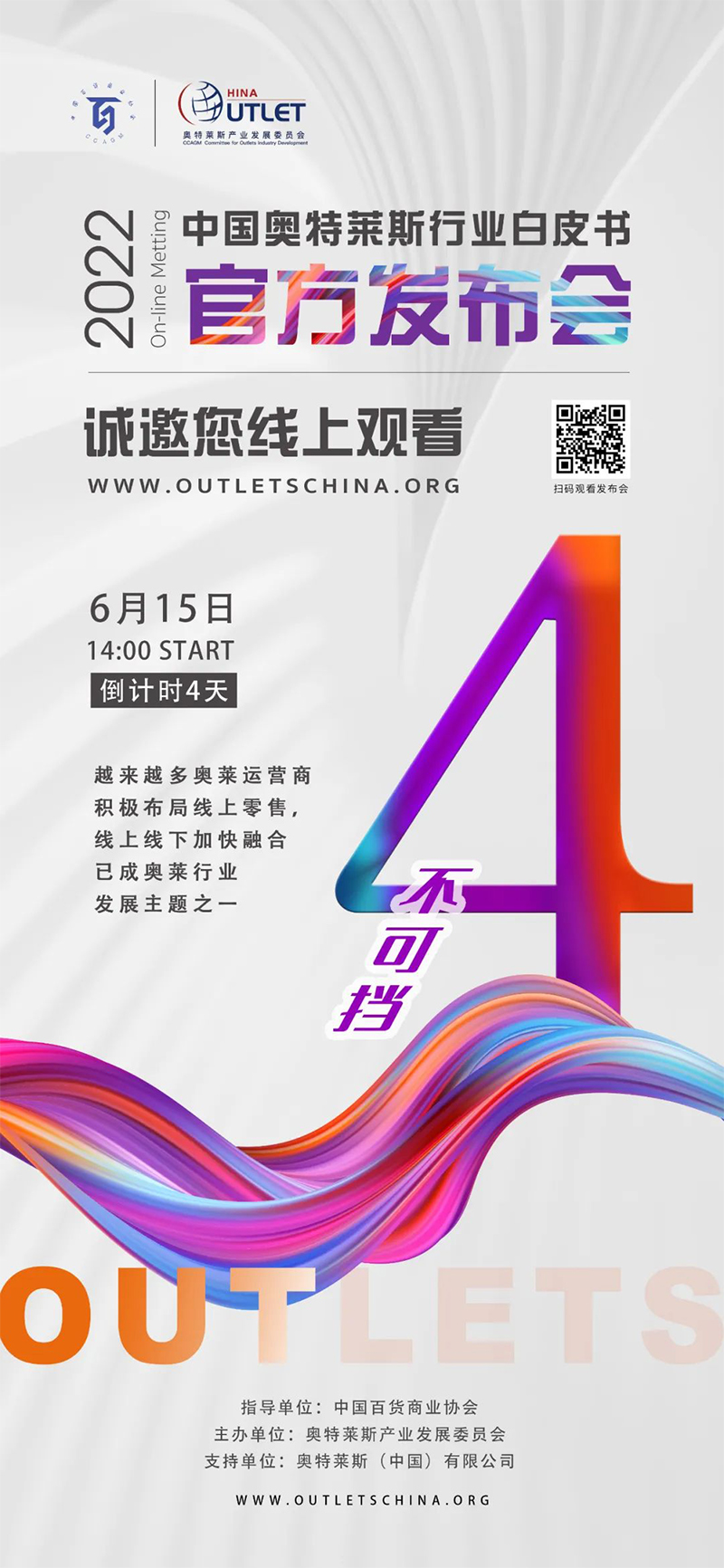 2022年6月15日14:00,《2022年中國奧特萊斯行業(yè)白皮書》線上發(fā)布會即將正式開始,本次發(fā)布會,將對國內(nèi)零售市場及奧萊產(chǎn)業(yè)引入中國20年發(fā)展的經(jīng)驗及機遇做出全新解讀。