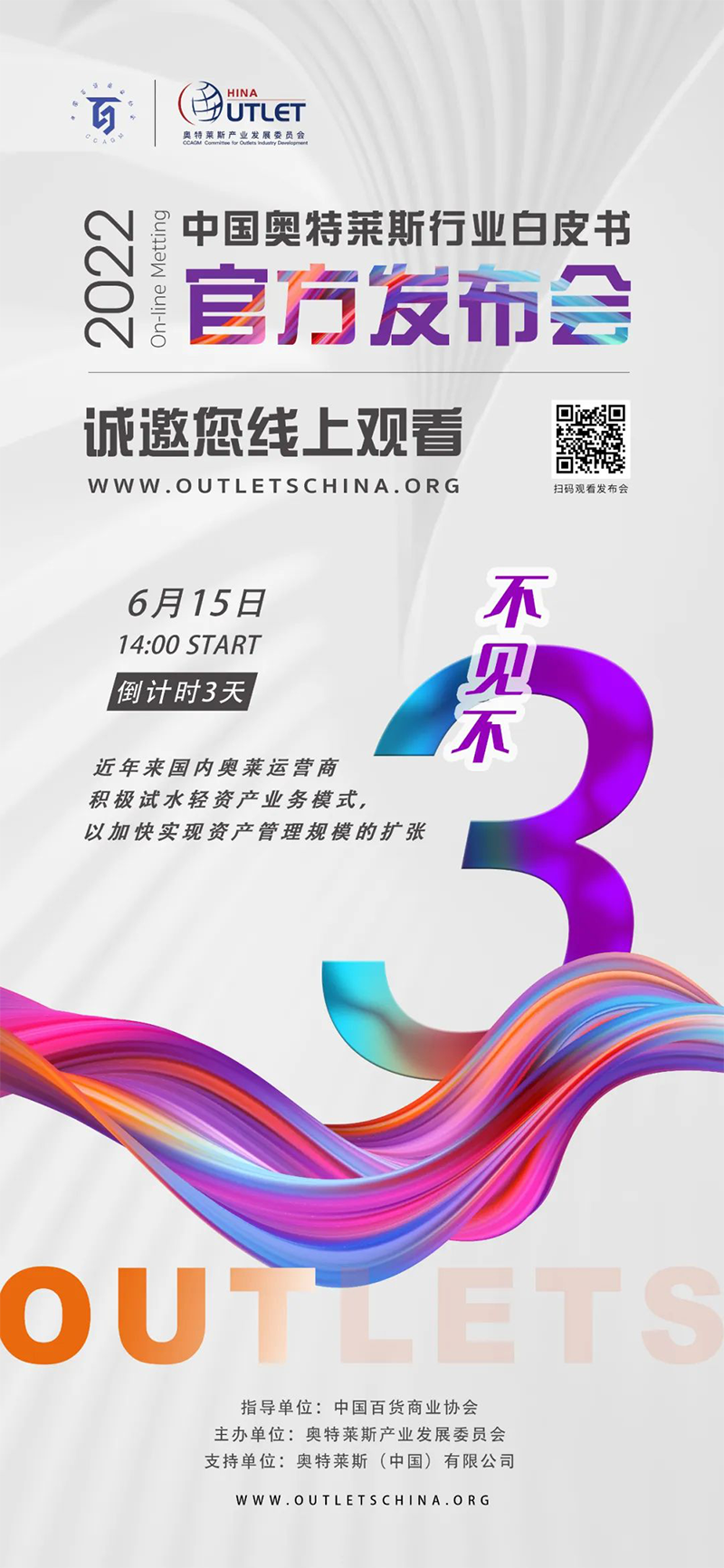 2022年6月15日14:00,《2022年中國奧特萊斯行業(yè)白皮書》線上發(fā)布會即將正式開始,本次發(fā)布會,將對國內零售市場及奧萊產業(yè)引入中國20年發(fā)展的經驗及機遇做出全新解讀。