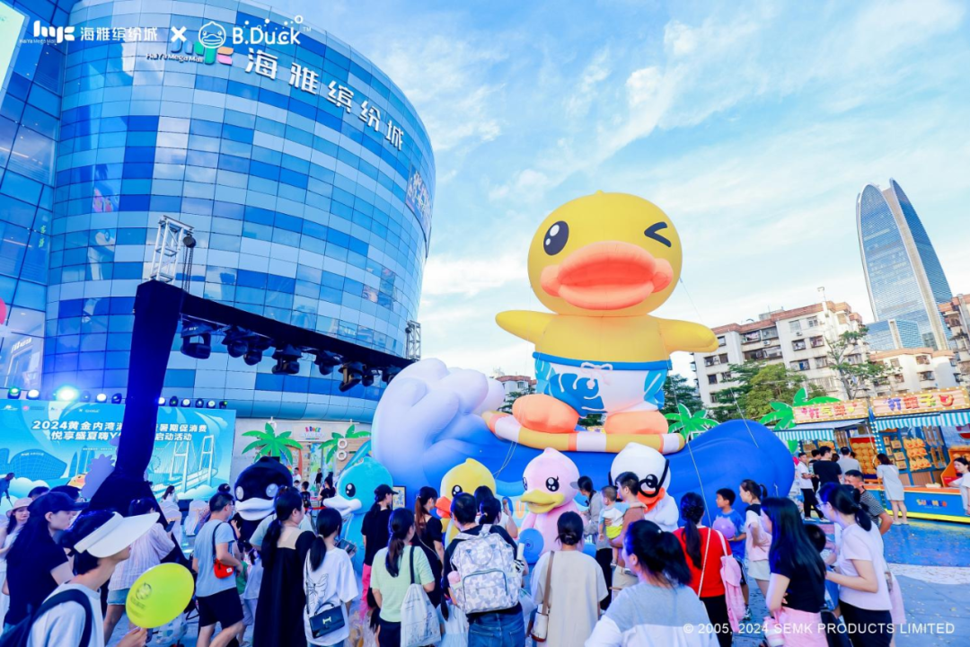時值暑期,深圳海雅繽紛城邀請B.Duck品牌創(chuàng)辦人“鴨爸爸”許夏林,以及市/區(qū)商務(wù)局、中山商務(wù)局、新安街道辦、市零售商業(yè)行業(yè)協(xié)會等官方代表,共同開啟了2024黃金內(nèi)灣消費季暨暑期促消費——悅享盛夏嗨Ya狂歡購系列活動的序幕,成功完成中國第一自主IP B.DUCK小黃鴨的“B.DUCK嗨YA狂歡節(jié)全國首展”。