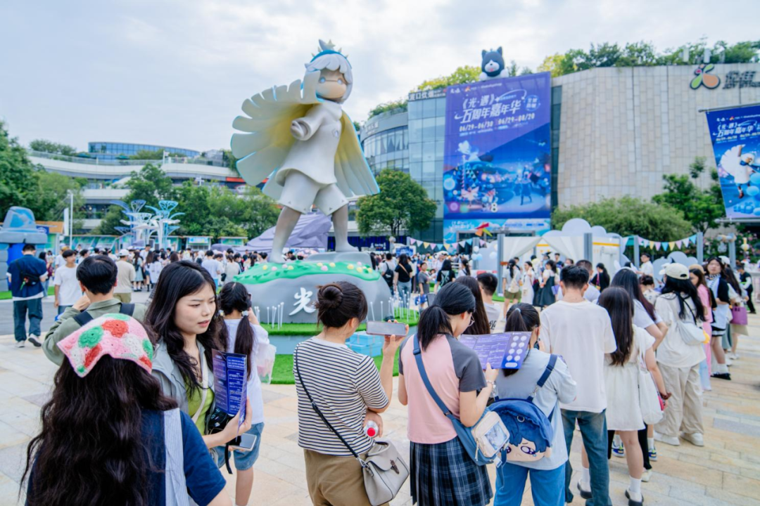 今年6月29日,融合項目AAA潮玩公園的定位,聚焦青年客群,在全球注冊用戶超2億、擁有諸多國際獎項的全年齡療愈系社交冒險游戲在成都大悅城落地呈現(xiàn)《光·遇》五周年嘉年華慶典的全球首展,開啟了為期2個月的主題活動。